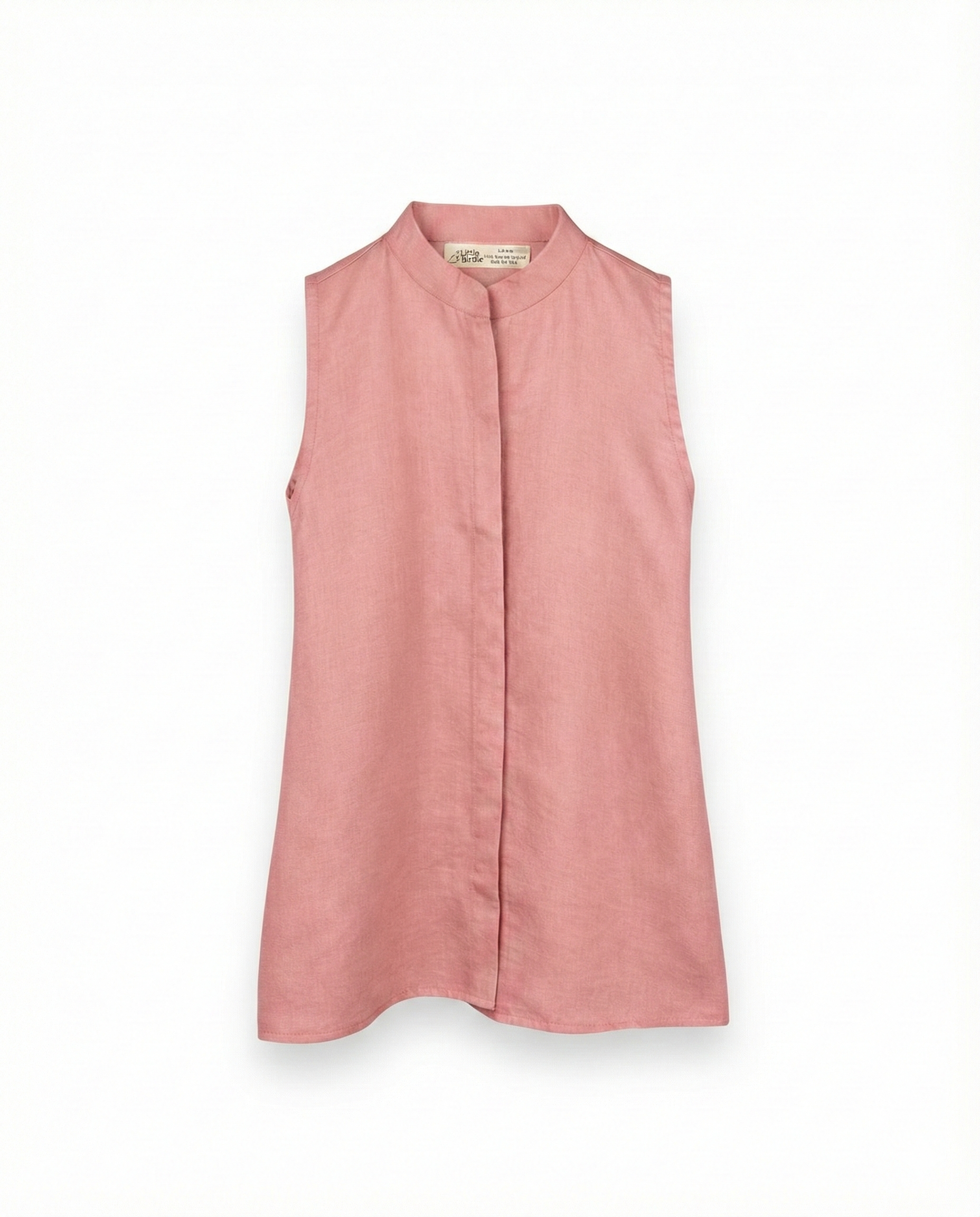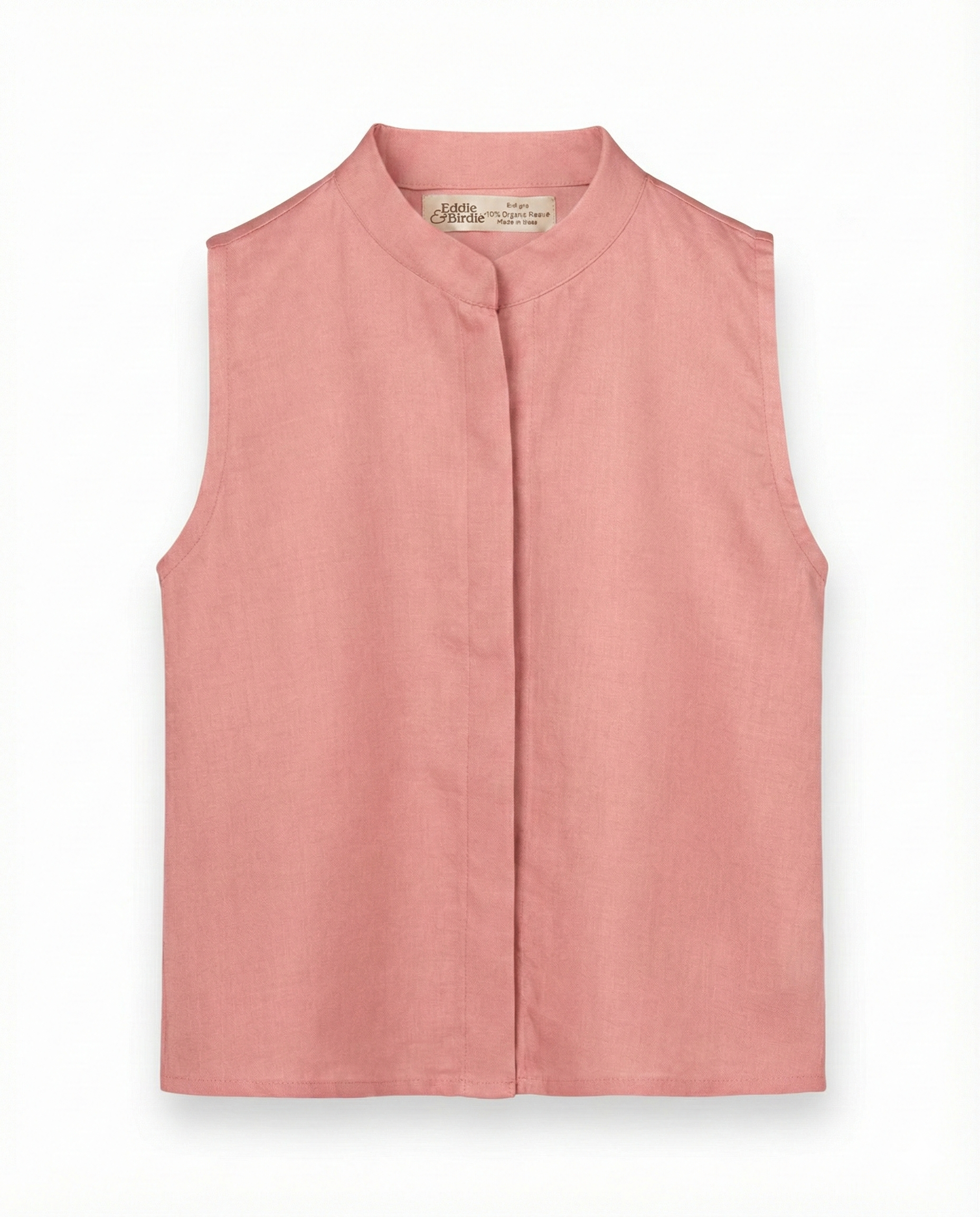 Sleeveless linen-satin shirt with a clean, structured silhouette