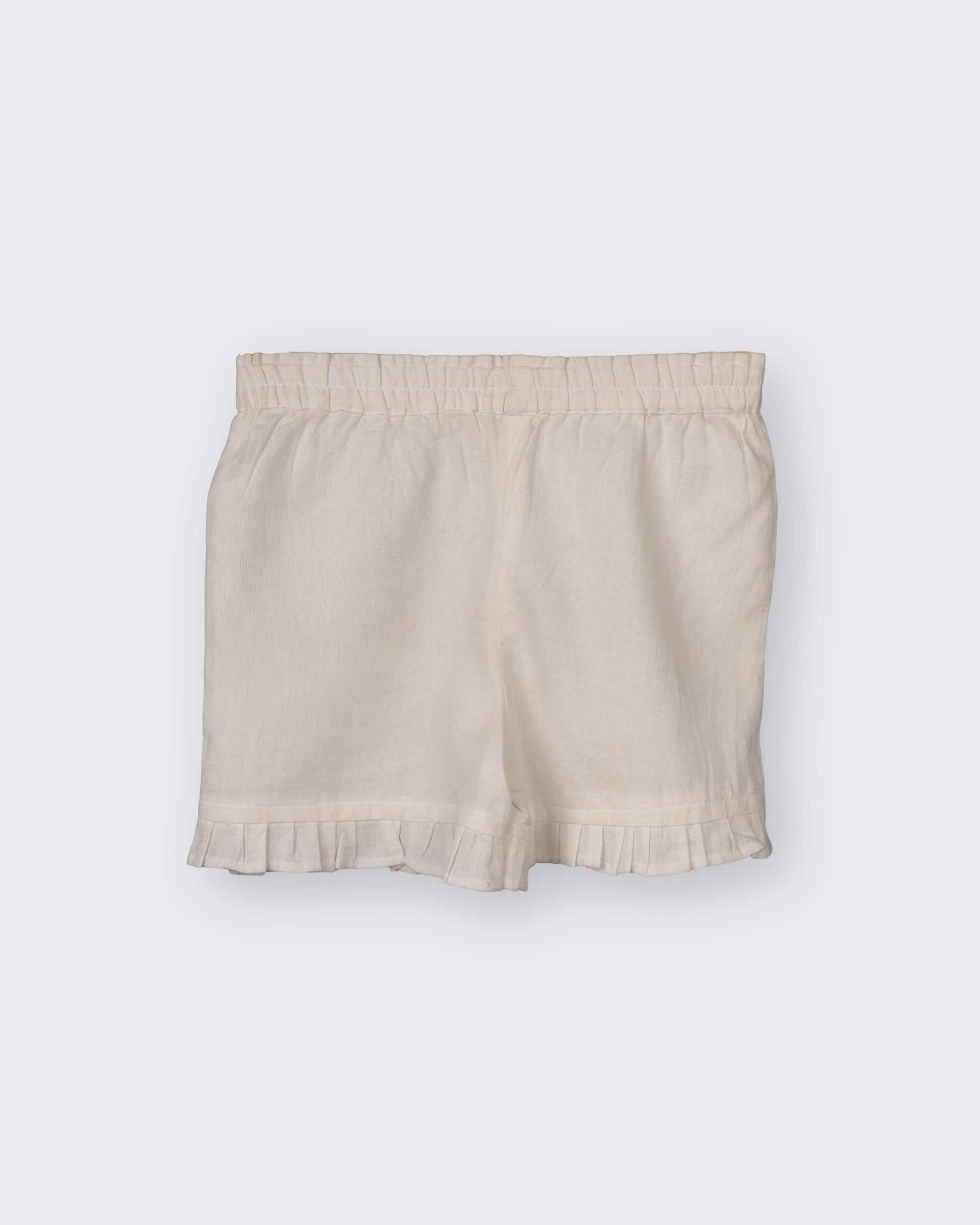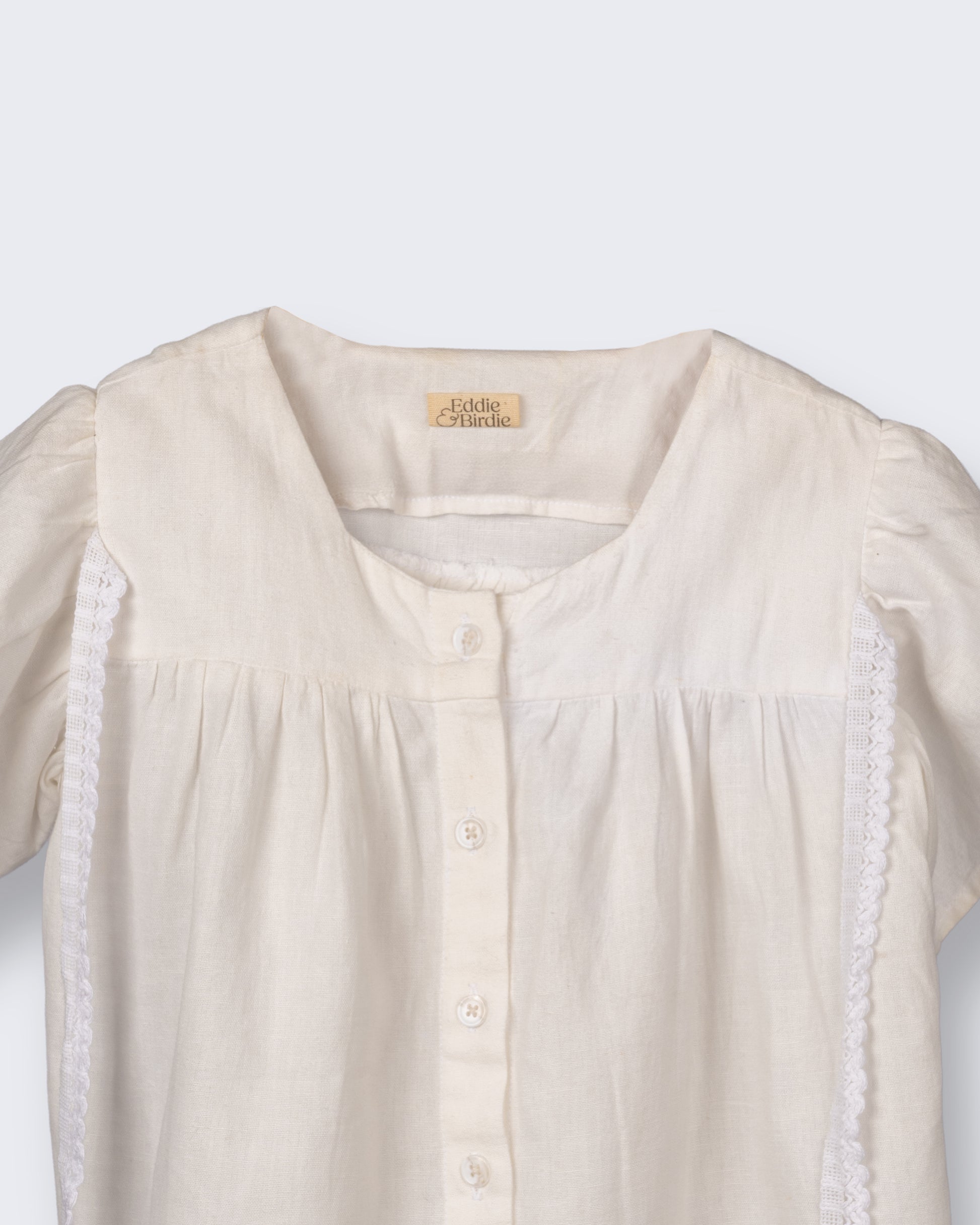 Gentle nights begin with gentle fabrics. This Eddie & Birdie nightwear set is thoughtfully designed for little ones to unwind, dream, and sleep comfortably. Featuring a playful laced bow top paired with classic ivory shorts, this set brings together comfort, breathability, and quiet charm,perfect for peaceful bedtime routines.
