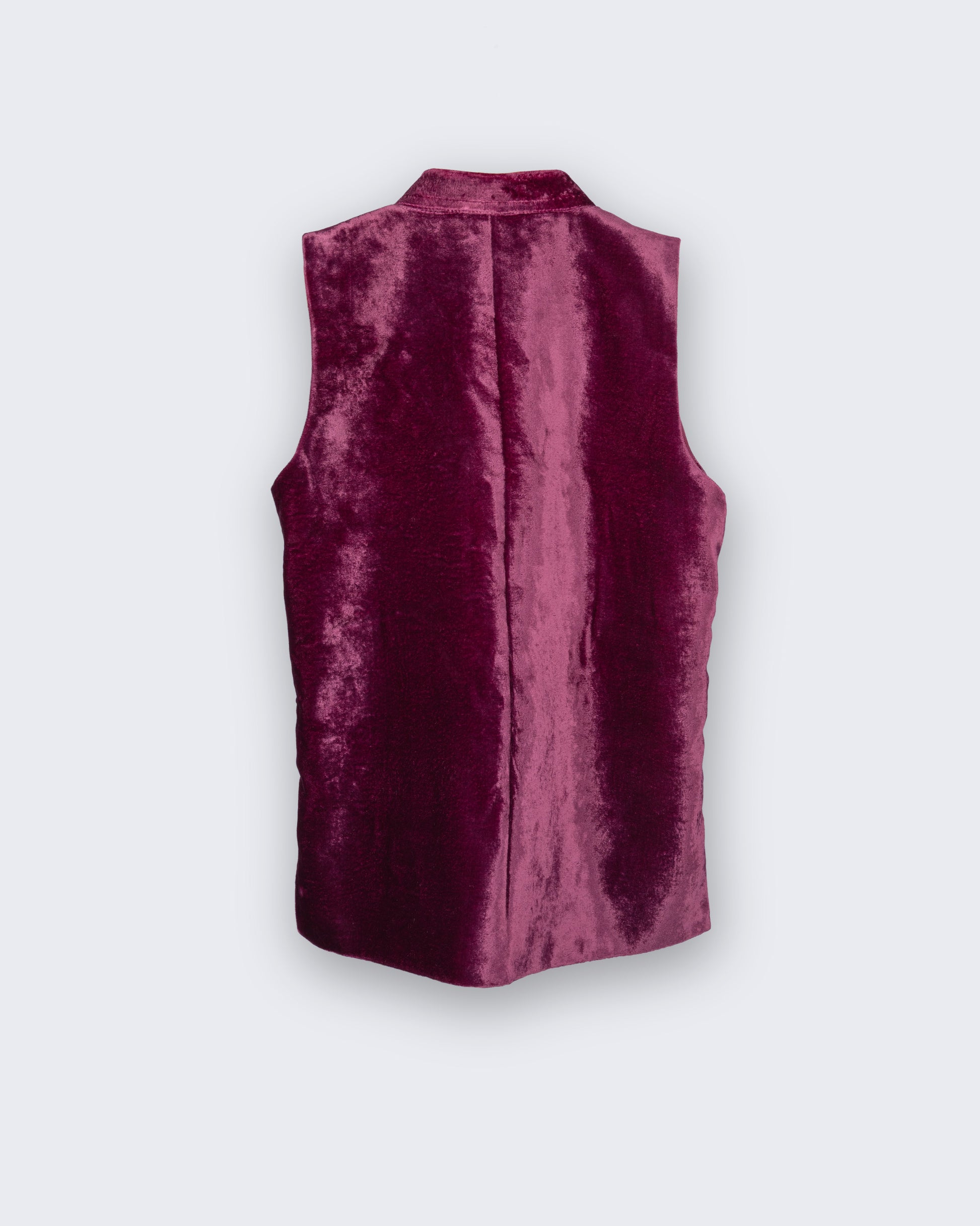 Sleeveless velvet koti designed to sit comfortably over the kurta