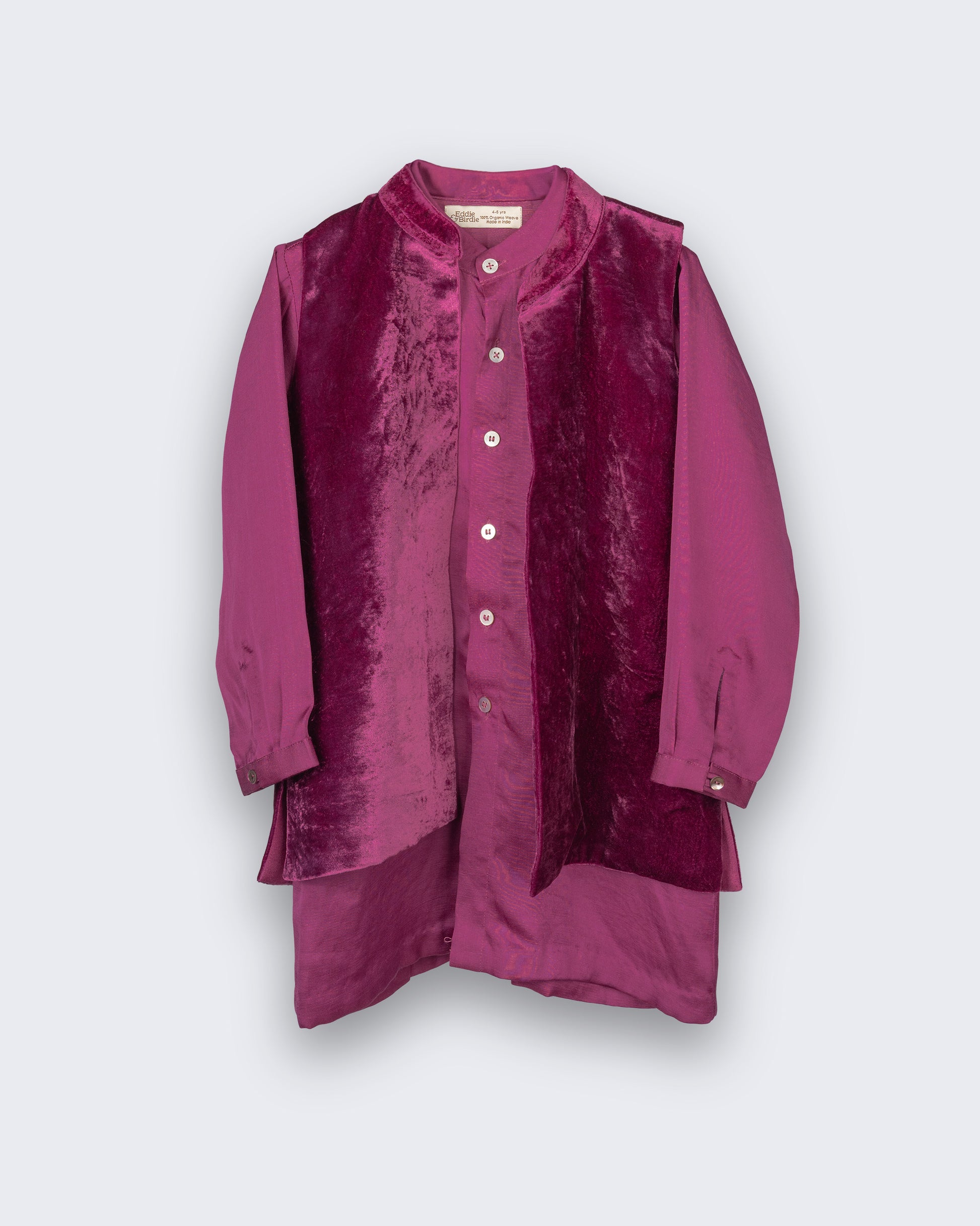 Designed for grand celebrations and timeless memories, this Eddie & Birdie Royal Velvet Koti Set brings together festive richness and refined craftsmanship. Featuring a deep jewel-toned kurta layered with a plush velvet koti and paired with classic ivory pyjamas, this ensemble captures the essence of royal Indian celebrations,tailored thoughtfully for young boys. An heirloom-worthy outfit, perfect for weddings and ceremonial occasions where tradition takes centre stage.