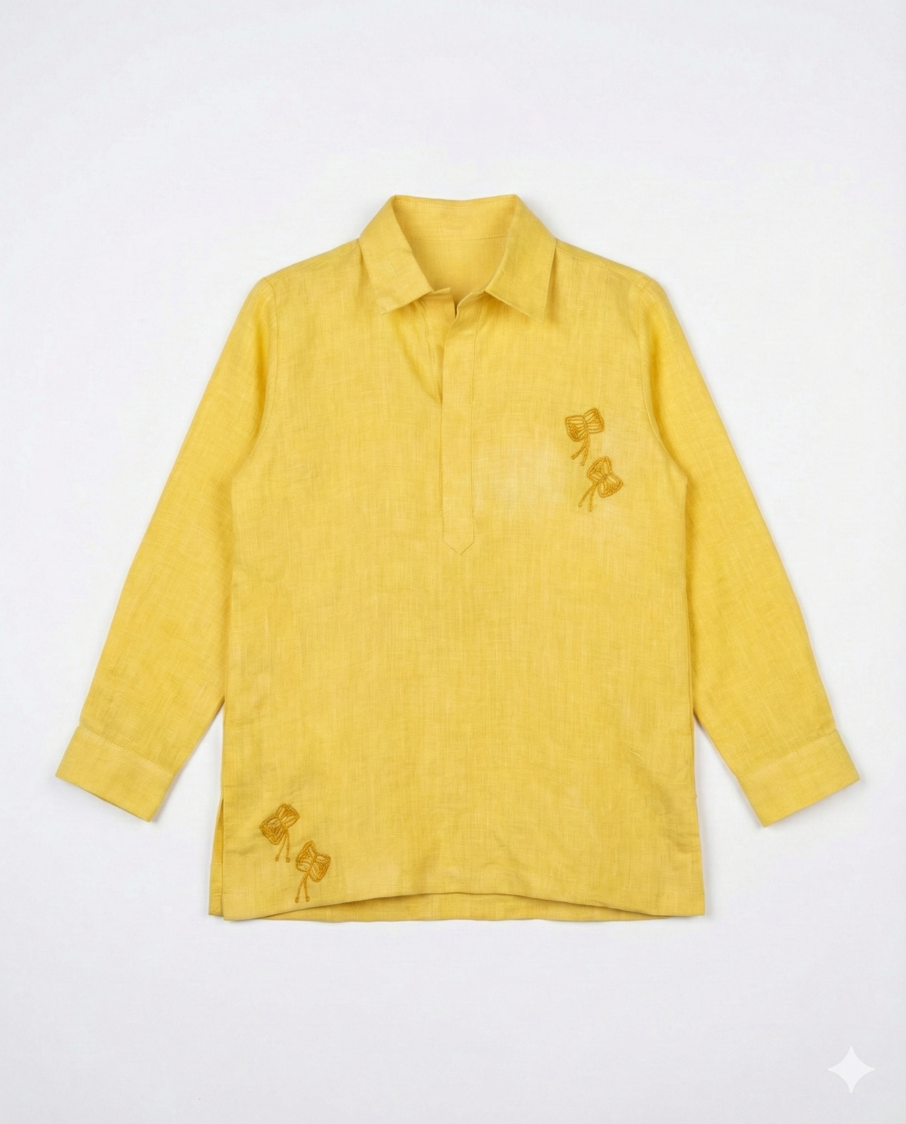 Bright, joyful, and thoughtfully detailed, this Eddie & Birdie kurta set is a celebration of sunshine dressing for little girls. Crafted in a radiant yellow hue, the kurta features delicate embroidery that adds charm without overpowering the silhouette. Paired with matching linen verboten pants, this set balances playful elegance with timeless comfort—perfect for festive mornings and special family moments.
